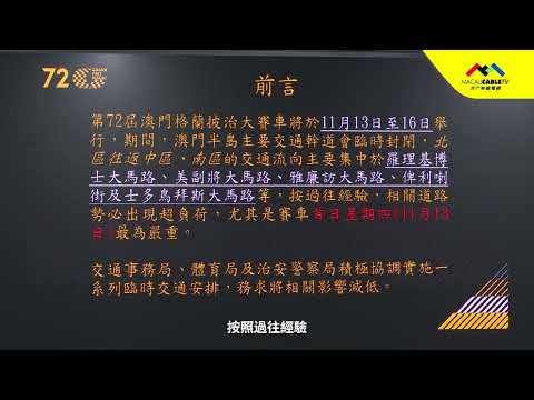 第七十二屆澳門格蘭披治大賽車將於11月13日至16日舉辦。當局於10月27日下午在賽車集車區舉行記者會,公布賽事期間的交通安排。
