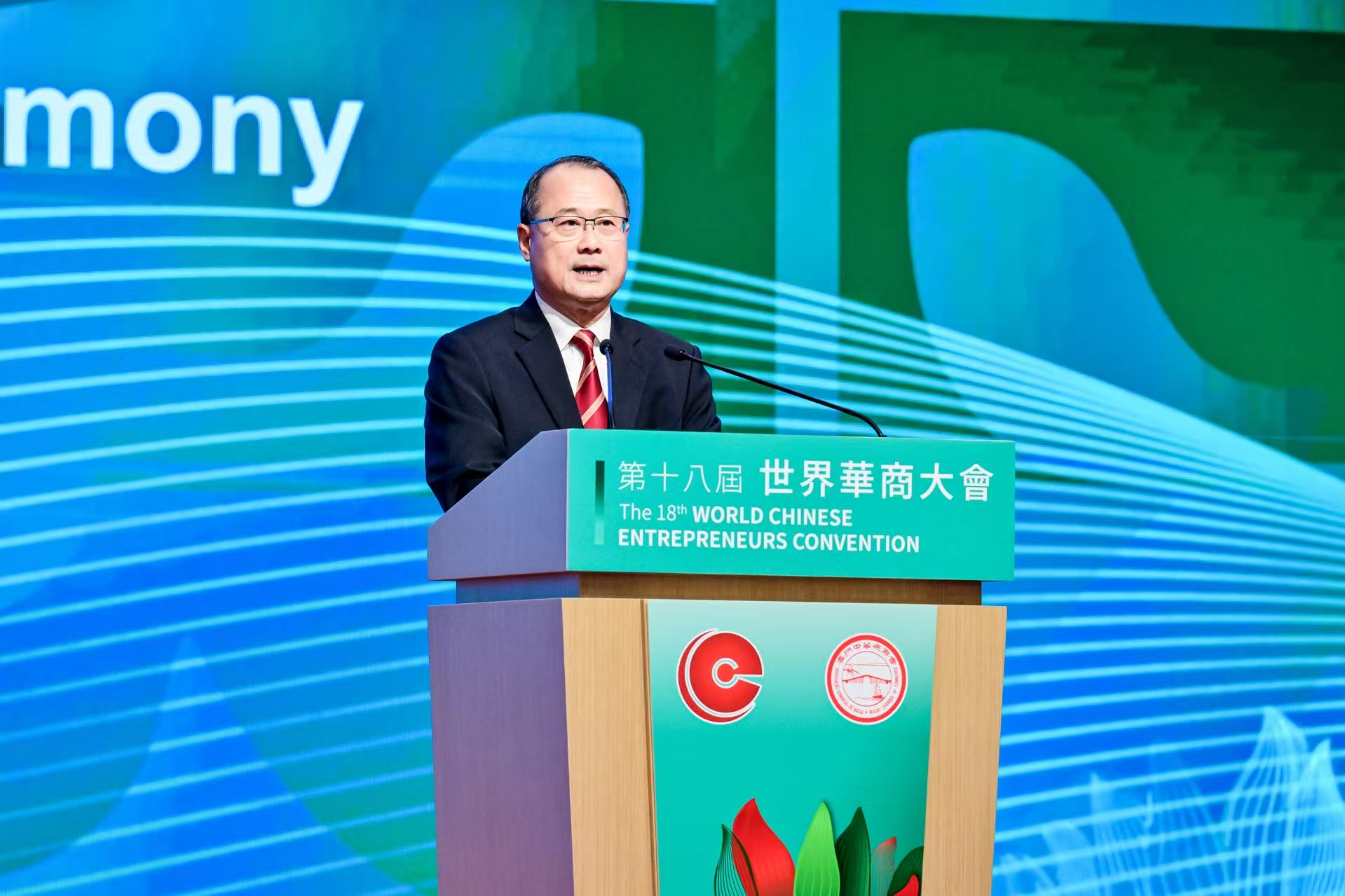 蔡冠深致辭時表示,澳門獨特的區位優勢、開放包容的營商環境,與世界華商大會的精神高度契合,為探討新形勢下的全球機遇、應對共同挑戰提供了絕佳的舞台。大會旨在匯聚全球華商的智慧與力量,共同探討數字經濟、綠色發展、「一帶一路」等領域湧現的新機遇,推動華商事業邁向新高,為促進全球繁榮,增進各國人民的福祉貢獻力量。香港中總作為世界華商大會秘書處,將繼續強化全球華商聯繫網絡,團結華人華商力量,支持世界各地成立中華工商團體。同時透過培育更多青年商業領袖,助力企業傳承創新,推動新生代華商成為新時代經貿投資的領導者、企業創新發展的推動者。