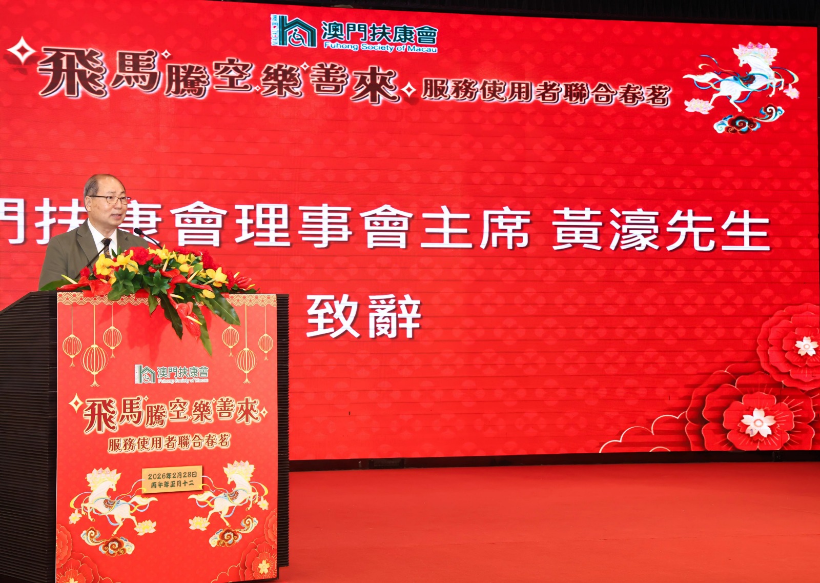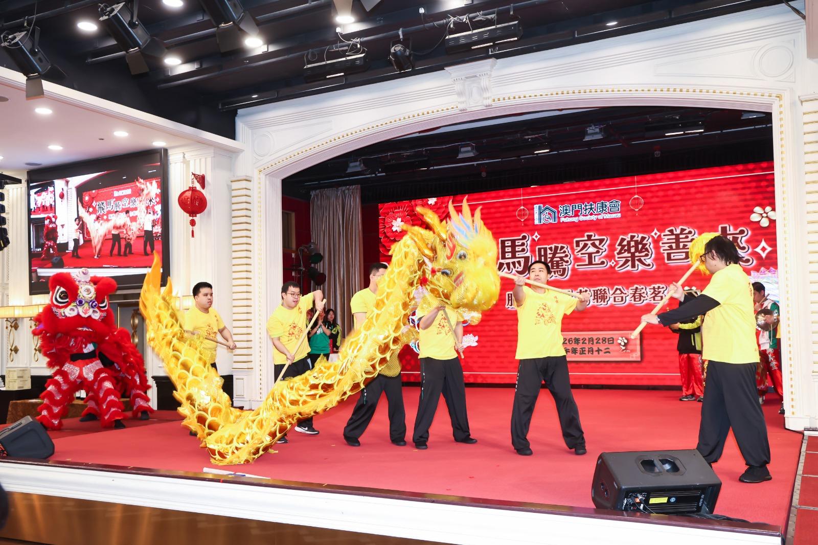 澳門扶康會日前於萬豪軒酒家舉辦“飛馬騰空樂善來”春茗活動,組織超過 900 名服務使用者及其家屬一起共渡。此次活動由該會轄下各服務單位聯合籌辦,旨在為服務對象及其家人帶來節日的溫馨與歡樂,共同歡度春節。