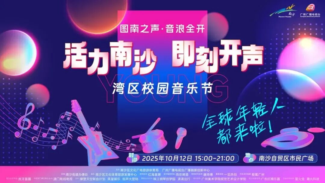 活力南沙·即刻開聲(第四季)灣區校園音樂節官宣重啟!10月12日,南沙自貿區市民廣場旭日舞台,音浪全開!超強陣容回歸:2024第三季灣區校園樂隊大賽「上星樂隊」原聲CD樂隊將再度登台,更有眾多特邀嘉賓驚喜助陣,精彩不容錯過!特別環節:星光大道秀場特邀廣州體育學院模特隊與多位Coser亮...