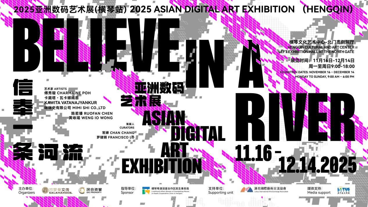 2025年11月16日上午11時,2025亞洲數位藝術展「信奉一條河流」於橫琴藝術中心正式開幕。展覽由橫琴粵澳深度合作區民生事務局指導,沙羅曼文化傳播有限公司、橫琴深合資產運營有限公司共同主辦,麥格國際廣告有限公司承辦,並獲澳門蓮花國際藝術交流協會、澳門蓮花衛視支持。開幕式邀請多位嘉賓出席剪綵,包括...