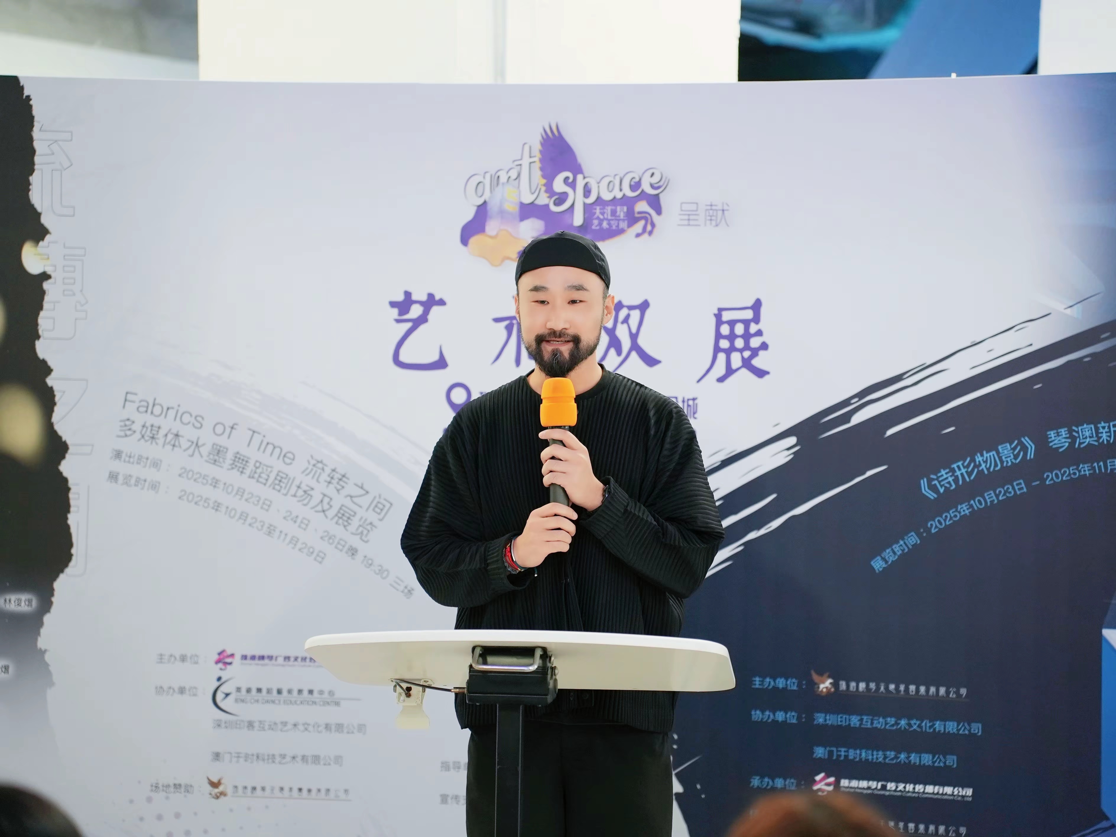 本次雙展將詩歌與當代藝術的跨媒介創作融合多媒體水墨舞蹈展演。其中,“詩形物影”琴澳新篇集合兩地的8位當代藝術家、詩人、工程師與音樂人等,讓詩歌掙脫自身媒介,呈現一場跨越媒介的多元解讀,打破觀展門坎,與觀眾共創。而“流轉之間”多媒體水墨舞蹈展演則承載著澳門劇場藝術家十年合作的積澱,以“時、空、念”為命題,融合當代舞蹈、傳統水墨與數字技術,構建東西方美學對話的流動劇場。