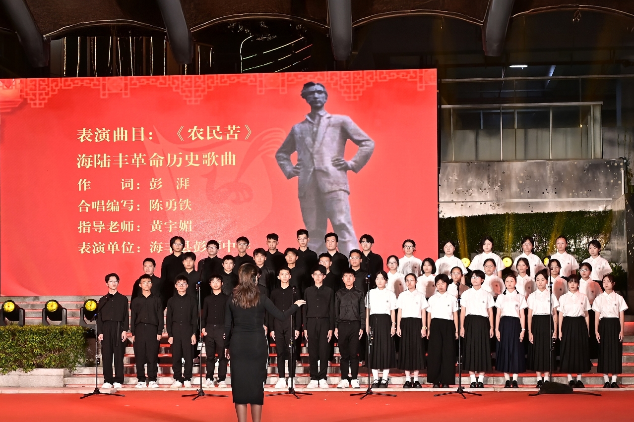 10月25日,文藝匯演於橫琴合作區天匯星影視綜合城室外廣場精彩上演。教青局副局長黃嘉祺、澳門中聯辦教育與青年工作部處長程啟銀、橫琴合作區民生事務局教育發展處處長唐翠冰、澳門愛國教育研究推廣工作委員會代表、多間粵澳姐妹學校代表、師生及家長等逾350人出席。黃嘉祺副局長在致辭中勉勵青年學生要銘記抗戰歷史,珍愛和平,期望通過粵澳姐妹學校的合作與交流,傳承和弘揚偉大抗戰精神,冀教育界同仁共同探索新時代愛國主義教育的方向。