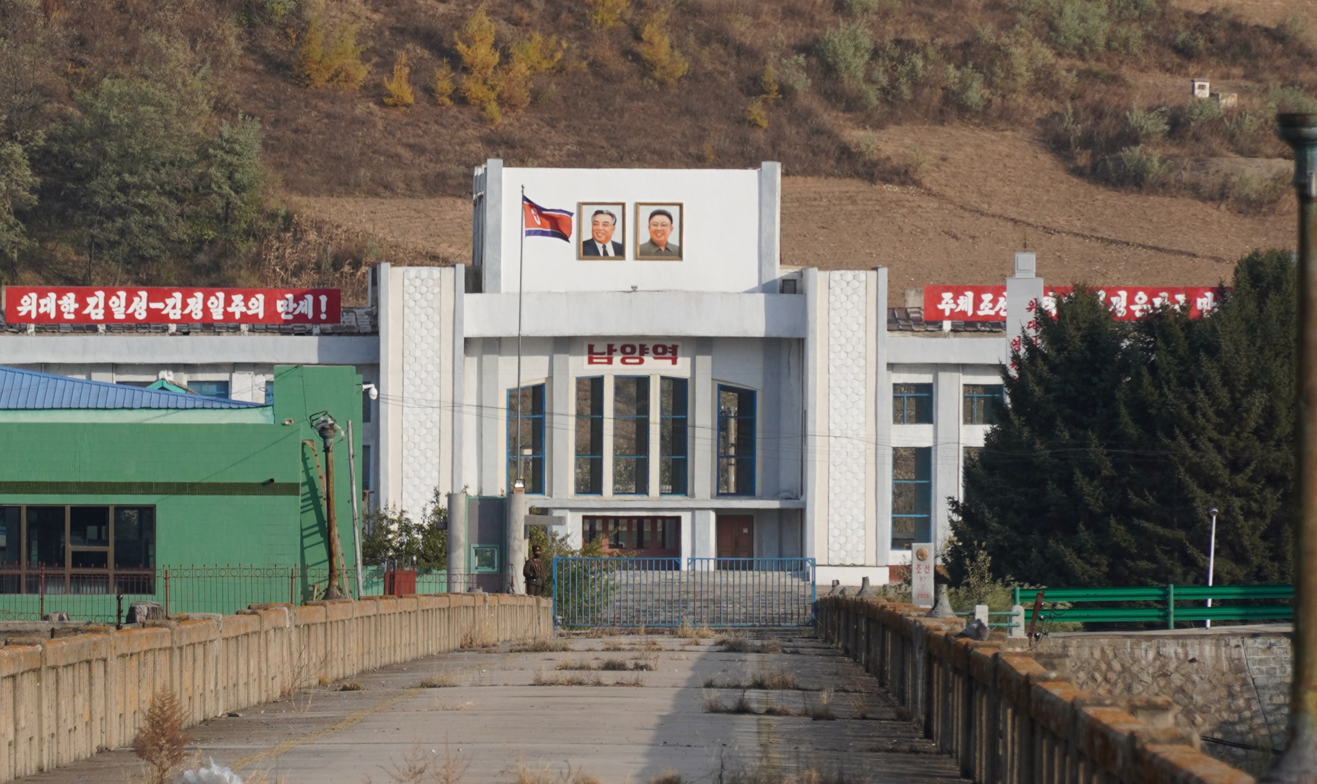 隨後,媒體團一行走進圖們口岸景區,漫步口岸老公路橋,在巍峨聳立的公路國門前合影,用鏡頭定格對祖國的熱愛。站在橋上分隔中朝兩國、寫有紅色“中國”兩字的鐵門前,對面朝鮮南陽市火車站大樓以及樓上金日成、金正日畫像,甚至朝鮮執勤人員均清晰可見。