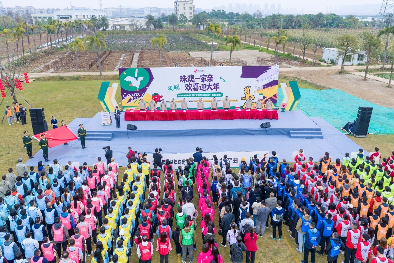 珠光集團董事長王宇聲向嘉賓致以誠摯的新春問候。他表示,珠澳兩地同根同源、人文相親,希望通過此次活動傳遞“一家親”理念,讓每位同胞感受到“家”的溫度與“年”的滋味。併發出盛情邀約:“珠海有山有海,珠光有玩有樂。誠邀各位來珠海過大年,品美食、尋年趣、探年味,共度一個充滿中國風、嶺南韻、珠海味的丙午馬年大年。”
