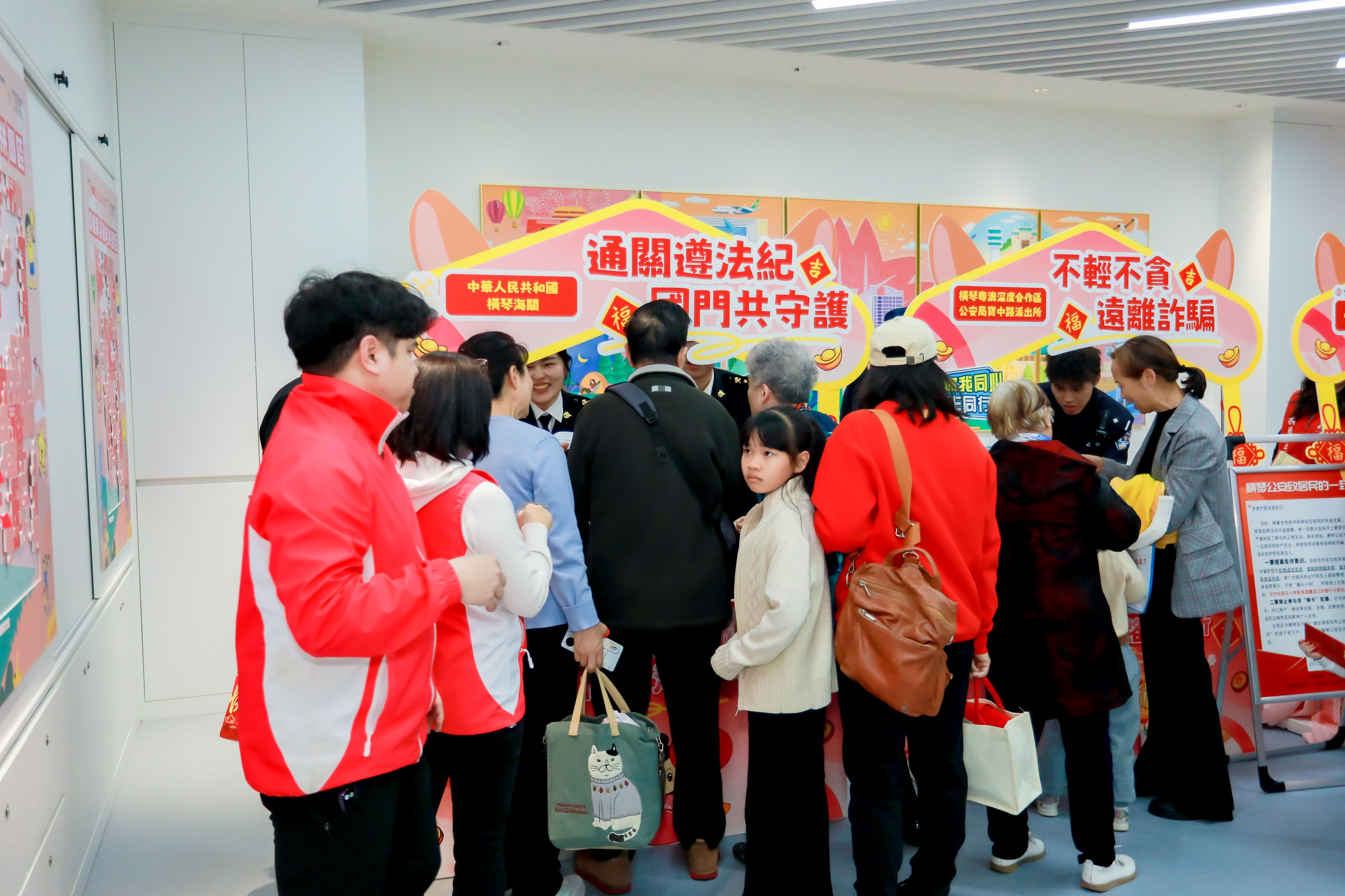 本次活動特邀橫琴海關、邊檢、反詐中心、供電局、消防大隊等多個部門聯合設立宣傳攤位。 現場圍繞防火安全、用電安全、反詐騙知識與通關政策等內容,結合生動有趣的遊戲互動環節,向居民系統普及了相關安全常識。活動現場氣氛熱鬧溫馨,主辦方向長者和家庭送上新春祝福及派發了象徵吉祥的“福”字,並與各職能部門攜手,共同為居民築起一道堅實的節日安全防線,讓大家在歡樂中共享平安,度過一個安心祥和的新年。
