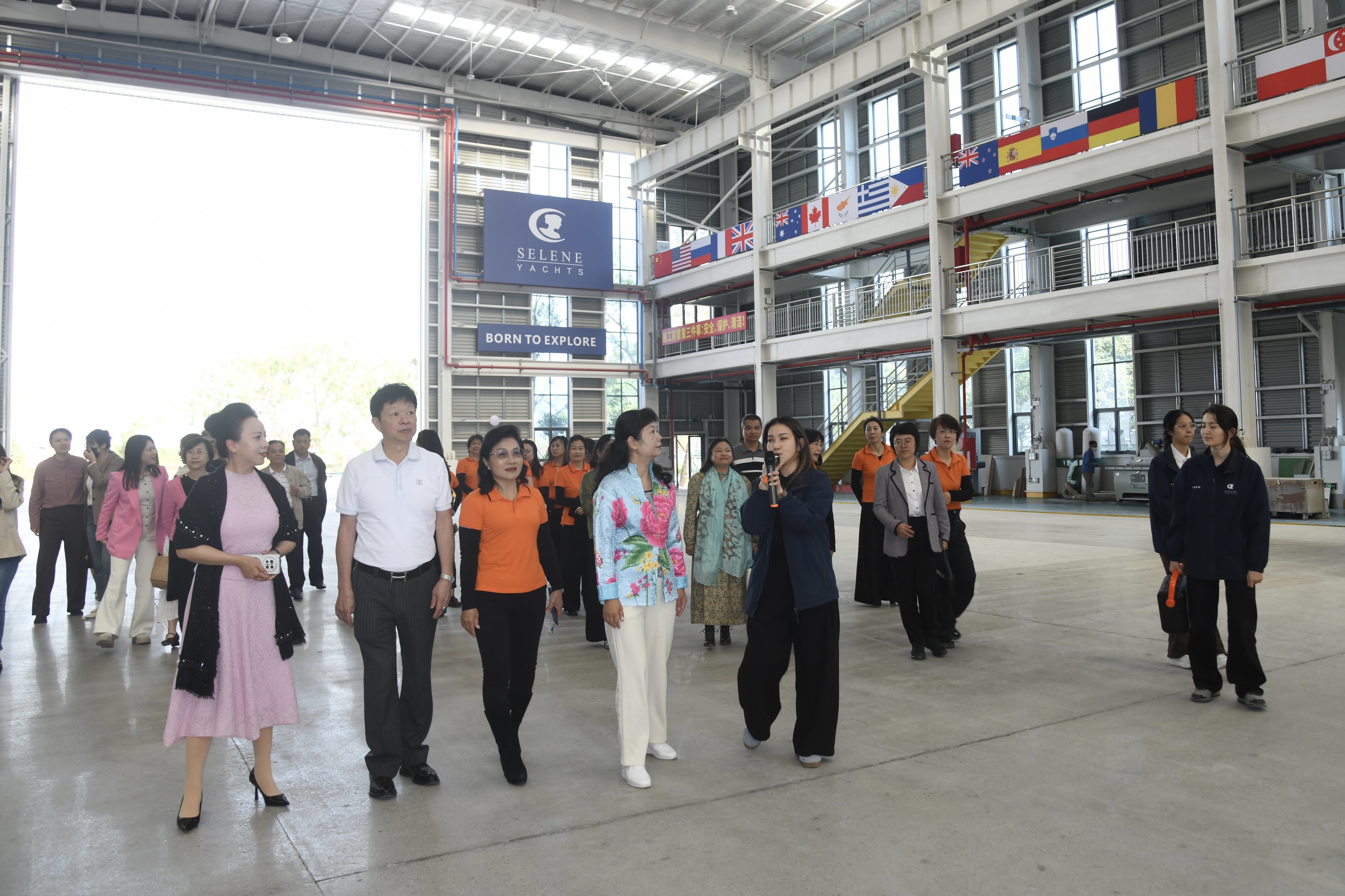 活動伊始,參訪團一行走進位於平沙遊艇產業園的珠海傑騰造船有限公司。這家紮根珠海二十餘年的台資企業,不僅是大陸高端遊艇製造的標杆,更是兩岸經濟文化交流合作的生動縮影。在公司總經理陳弘文的介紹下,兩岸婦女同胞實地參觀了企業最新投用的製造廠房及配套碼頭,現代化的生產線、精密的數控加工中心和完善的環保處理系統,讓台灣同胞近距離感受“珠海智造”的強勁動能。