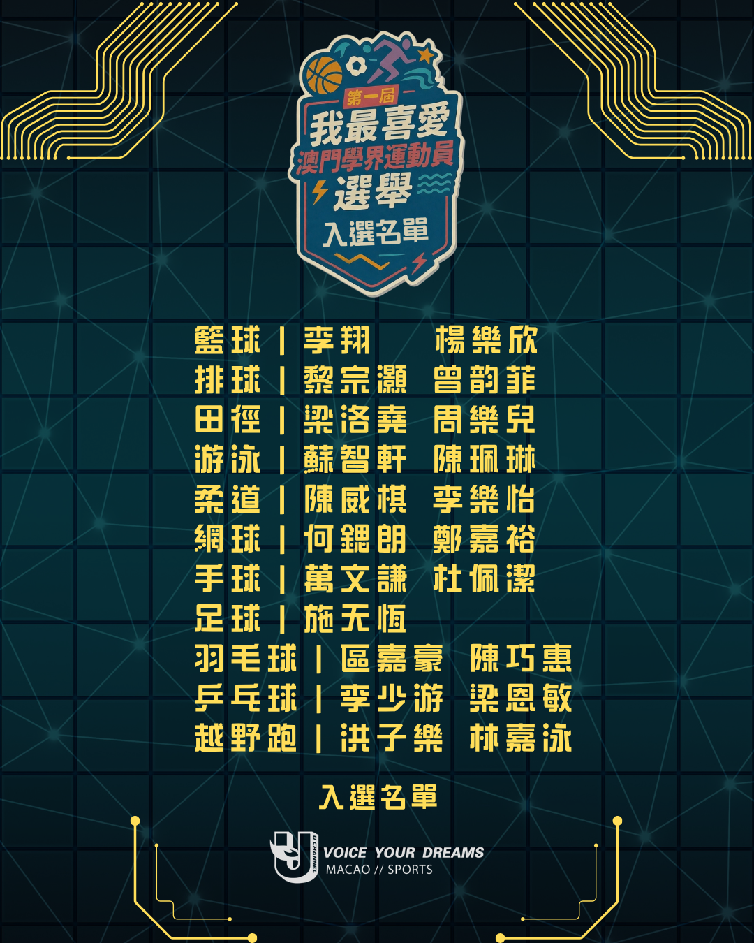 首屆「我最喜愛學界運動員選舉」入選名單出爐