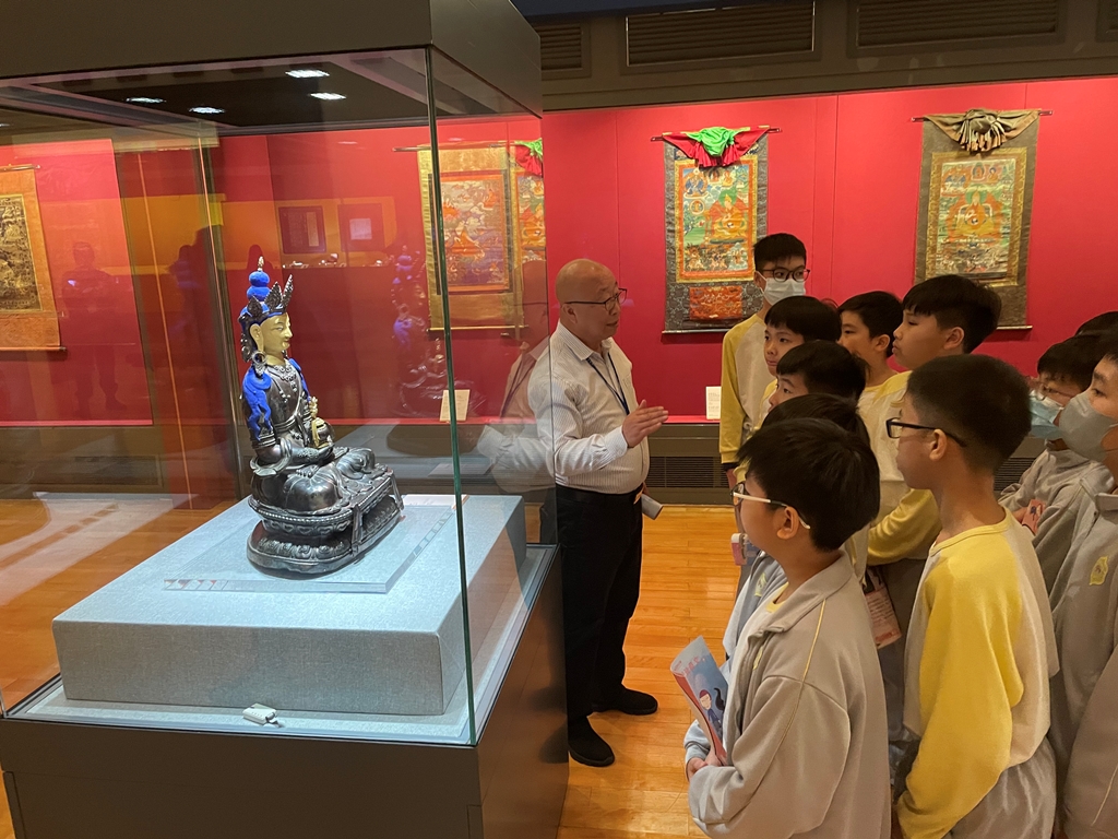 日前,參加活動的師生在導賞員的帶領下,先後觀賞了“吉祥殊勝——故宮與扎什倫布寺珍藏文物展"、“丹青傳情——陸昌百年誕辰回顧展"及“康迪達.赫弗——宏空之境"三個展覽。在導賞員的講解下,遊走於古今中外的藝術作品之中,同時學習到參觀藝術博物館時應遵守的禮儀。參與是次活動的師生表示,展覽內容豐富,擴闊視野的同時,增加了對參觀藝術博物館的興趣。